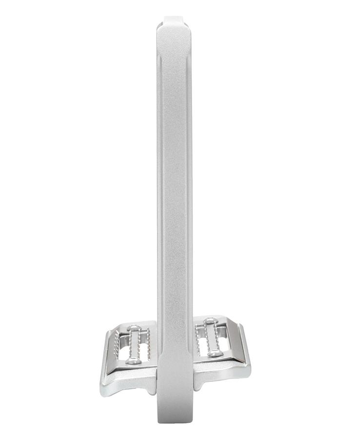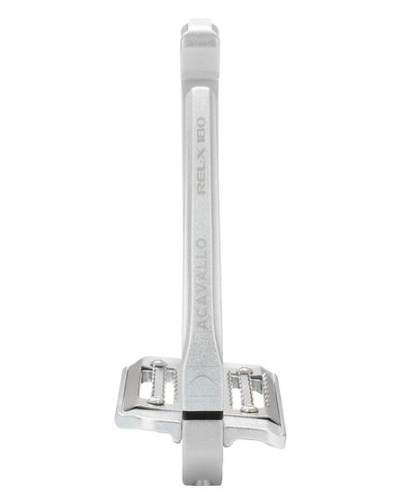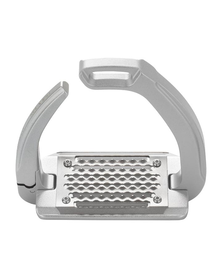 The strategically placed lock and release mechanism prevents accidental slipping. Pin and internal components are made of stainless steel. The tread is inclined at 5° and the footbed is equipped with Grip System. The stirrups are light weight (519 g) and feature a shot peening surface treatment.