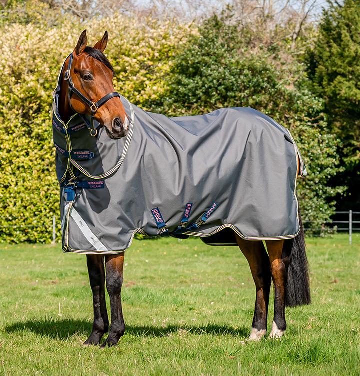 - Leg arches, reflective strips, cross surcingles, shine enhancing polyester lining, hood and liner loops.