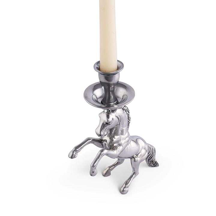 Bring home a touch of your stable with these equestrian candles that will lighten your dwelling. The candle holder is designed to hold the tallest taper candle with great stability, one solid piece casted in aluminum by our expert artisans at Arthur Court. The candle holder features a detailed rearing horse statue with a candle cup with dripping tray on his head. Whether you are looking for horse items for home or a suitable gift for cowgirls or cowboys, these metal horse decor will fascinate any horse lover.