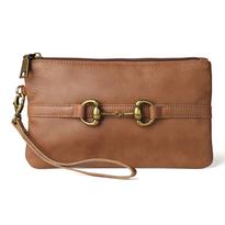 The Snaffle Bit Clutch Bag is made from luxurious soft leather and accented with a brass snaffle bit. With convenient credit card and bill fold slots, you can keep your essentials neatly organized. The bag measures 9'' x 5.5'', making it the perfect accessory for any occasion.