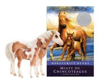1:9 scale mare and foal set includes a paperback copy of Marguerite Henry's novel Misty of Chincoteague.