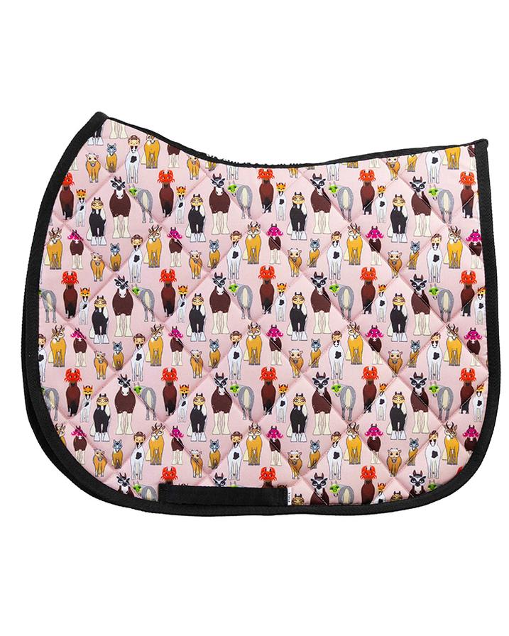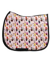 This squishy, cushioned saddle pad is contoured around the horse's withers to help alleviate pressure while riding. Silly printed patterns on the outside, with a mesh underside to keep your horse cool during exercise.