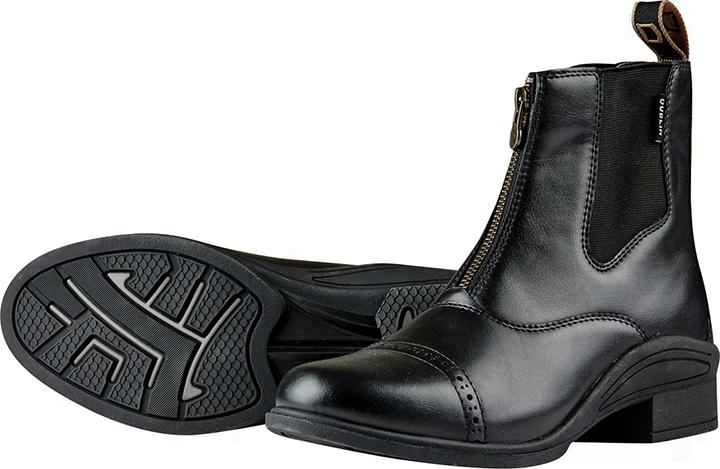 Ride in style and comfort with the fashionable Dublin Altitude Zip Horse Paddock Boots. These boots are made from high-quality grained faux leather, giving them the luxurious look of leather without the hassle of maintenance. The branded zip makes each boot easy to slip on and off, while an innovative footbed provides all-day comfort for any activity. With a high arch and in-built shank, these boots offer superior lateral stability, making them perfect for riding or walking. Plus, the durable rubber outsole features flex point grooves for better grip and natural movement.