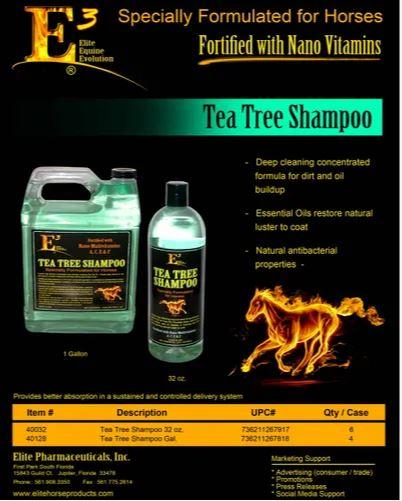 E3 Tea Tree Shampoo is a gentle high lathering concentrated horse shampoo containing Tea Tree Oil. Provides deep cleaning for dirt build up and oil. Assists in keep hair soft while restoring natural luster to coat.