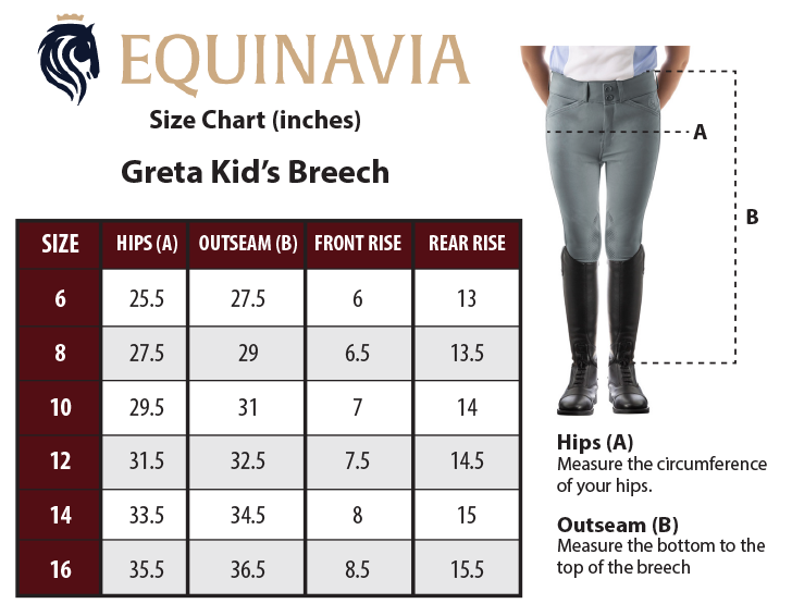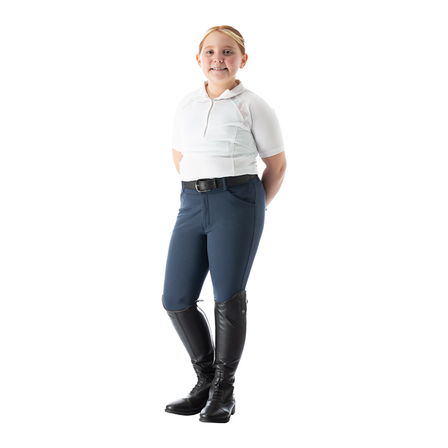 Just like the Equinavia Astrid Womens Silicone Knee Patch Breeches, but for kids! Equinavia Greta Kids Silicone Knee Patch Breeches are an excellent option both in and out of the show ring! Mid-weight, ultra soft fabric with silicone knee patch grip keeps you secure in the saddle. Micro-mesh lower legs provides a streamlined look and feel under your boot, while keeping you cool. Great stretch and overall comfort in this breech. The Greta breeches are the ultimate choice combining function, comfort and style.