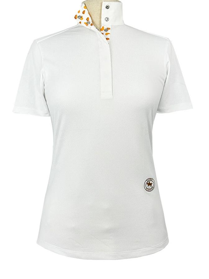 Our Talent Yarn® Show Shirt is the classic choice for looking crisp and polished in the show ring. Expertly tailored in easy pullover style with a gently tapered body fit for a neat appearance with or without your show coat. Unsnap the collar to show our exclusive fabric trim. Smart, thermoregulating technology helps maintain an optimal body temperature. Moisture wicking and deodorizing antimicrobial properties provide quick dry and stay fresh benefits that never wash out. Stain resistance helps keep your shirt looking new wash after wash. Breathable, stretch Talent Yarn keeps you comfortable in the saddle even on the longest days.