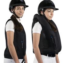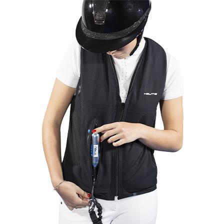 Mechanical system: Reliable, simple, and robust system. Simply hook the lanyard of the airbag vest to the saddle using the saddle strap. The airbag inflates when the lanyard is pulled off.