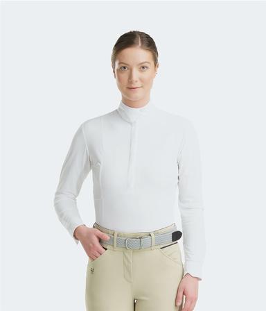 We have created a brand-new design to bring even more comfort. With its ergonomic cut-outs, this shirt adapts perfectly to the body's movements. The shape of the wrist and collar has also been specially developed to free up the rider's movements. Made of a 4-way stretch fabric and equipped with our UV-Block technology, the shirt offers optimum comfort and protection. The micro-perforated area in the back is highly breathable and efficiently dissipates heat during intense efforts. Its high collar is suitable for hunter classes.