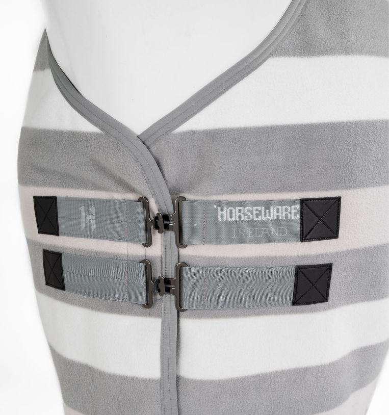 Add a touch of luxury to your horse's wardrobe with the Horseware® Newmarket Fleece Cooler, featuring our iconic stripe pattern. Beautifully soft, the high-quality fleece is double bonded and anti-pilling. Its exceptional breathability and moisture-wicking properties make it ideal for stable use, travel, or show days.