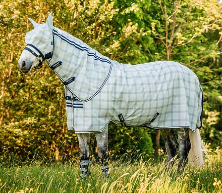 Shield your horse from the sun and insects with the Horseware® Newmarket Plus Fly Sheet. Providing a combination of UV and fly protection this fly sheet is made of a new woven polyester mesh with PVC coating. The innovative fabric is breathable yet durable to protect your horse day after day. A silky-smooth lining on the mane, shoulder, and tail areas help reduce friction and prevent rubs. Extra long tail flap and included detachable hood provide maximum coverage.