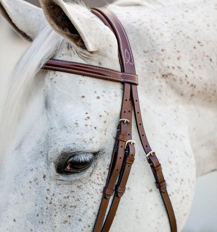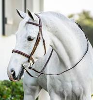 The Horseware® Pony Hunter Cavesson Bridle with Reins brings distinctive style in a classic pony fit. Contrast fancy stitch detailing on the noseband, browband, and crown accents the soft, quality leather. A lightly padded headpiece ensures maximum comfort. Features billet style cheekpieces. Comes complete with included matching laced reins.