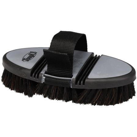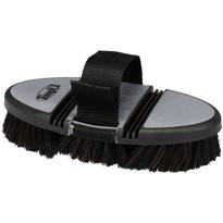 This innovative body brush flexes at two points, allowing the brush to fit the contours of the horse’s body. Made with soft horsehair bristles, it is the perfect finishing brush to remove fine dirt and dust. Complete with adjustable nylon hand strap to keep brush firmly and comfortably in your hand.