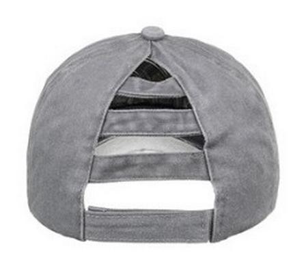 Vintage Washed Cotton Cap. Distressing on hat brim. Ladder style back with different opening heights allows for wearing any updo! Hook and loop back closure.