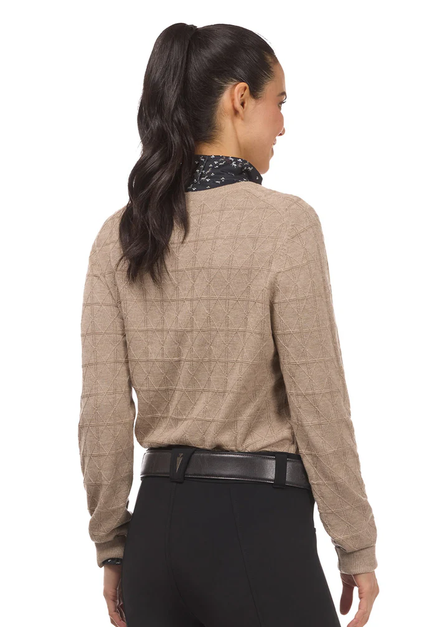 Add subtle equestrian charm to your wardrobe with this lightweight Merino wool blend sweater, featuring a diamond pattern throughout the body and snaffle bit design along the sleeves. Naturally thermoregulating and breathable this sweater is as functional as it is stylish. The classic crewneck with ribbed trim falls at the hip for easy layering or a polished tuck into breeches.