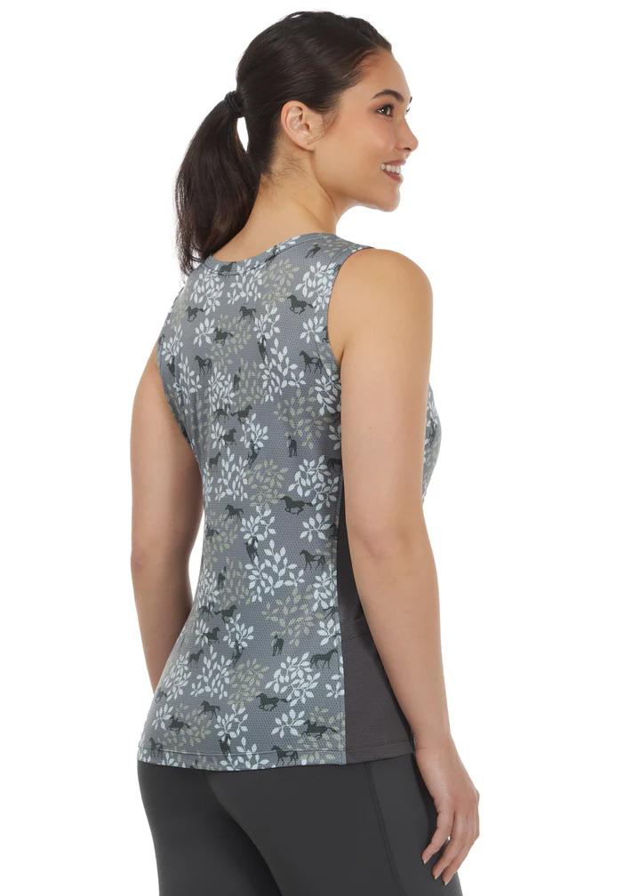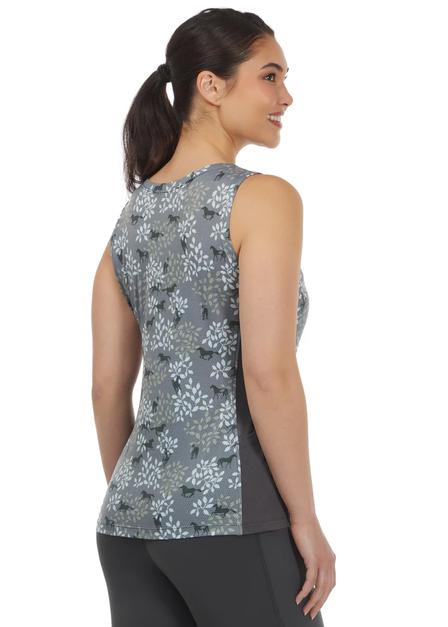 Feather light and highly breathable, this airy riding tank frees you to trot through summer’s stickiest heat in comfort and style. Ice Fil® fabric helps cool and regulate temp while providing UPF+30 protection. Strategically sleeveless design has wider straps for coverage, a modest scoop neck and armholes that never gape. Contrasting side panels shape a flattering silhouette that makes playful prints pop. Two side pockets for twice the sugars.