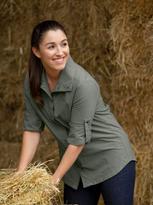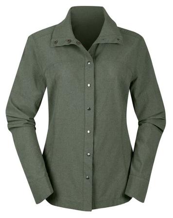 A summer wardrobe essential, this lightweight, breathable shirt fights off sun and bugs. Pop up the tall collar and wear the sleeves long for the ultimate defense or fold down the collar and snap up the sleeves for a short sleeve option. Princess seams create a feminine silhouette, while a back-hip stash pocket adds handy storage without adding bulk. Full-length, snap-front for a quick and easy change.