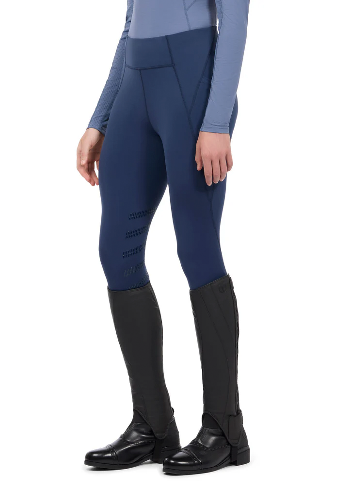 Step into cool comfort with a lightweight take on Kerrits’ best-selling riding tight, engineered with Coolcore® fabric for high-heat performance. Breathable UPF+50 fabric uses Biomimetic Fiber Geometry™ to wick moisture, speed evaporation, and dry fast. Silky four-way stretch fabric provides light compression, gentle support, and lasting shape retention, while minimal seams and a double-layer contoured waistband offer smoothing coverage and stay-put performance. Kerrit Sticks™ silicone knee patches deliver flexible grip in the saddle; two large pockets keep your phone and essentials handy.