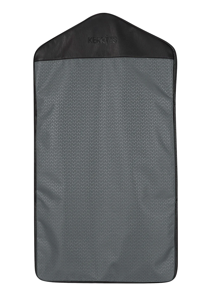 This horse show garment bag has a stylish Chevron Bits design with faux leather accents. It protects your show clothes with durable, easy-to-clean, water-resistant fabric. The full zipper makes it easy to access your clothes, and an inside pocket helps organize smaller items.