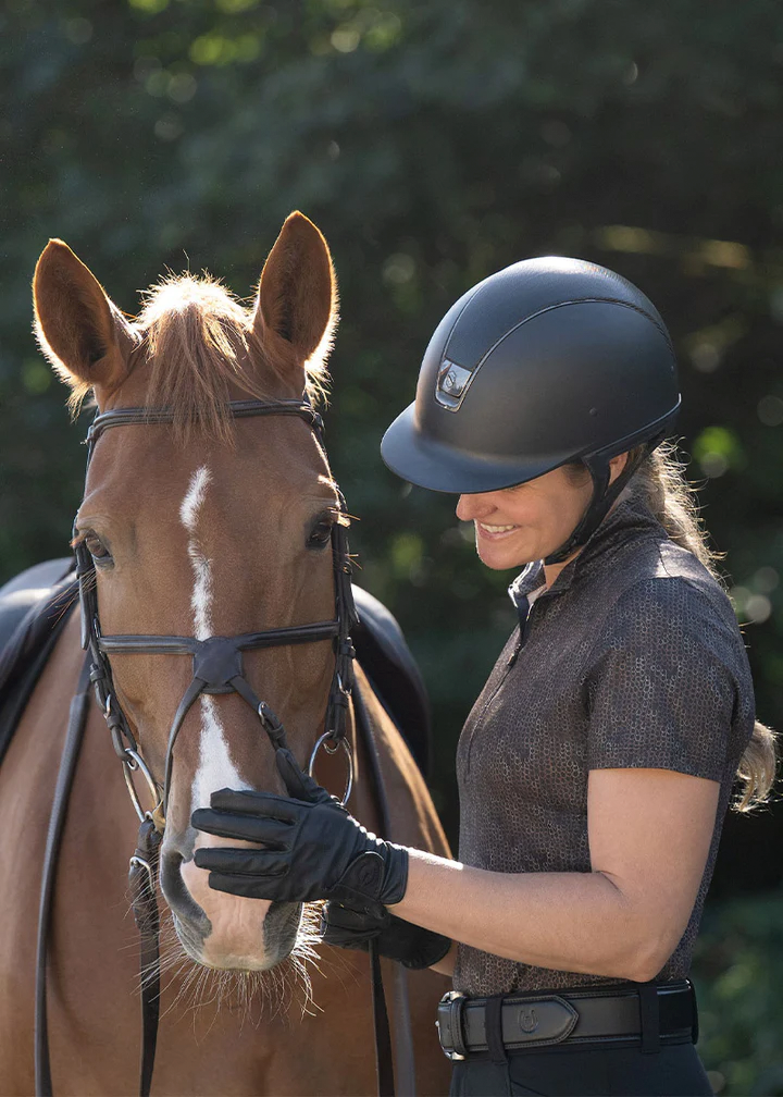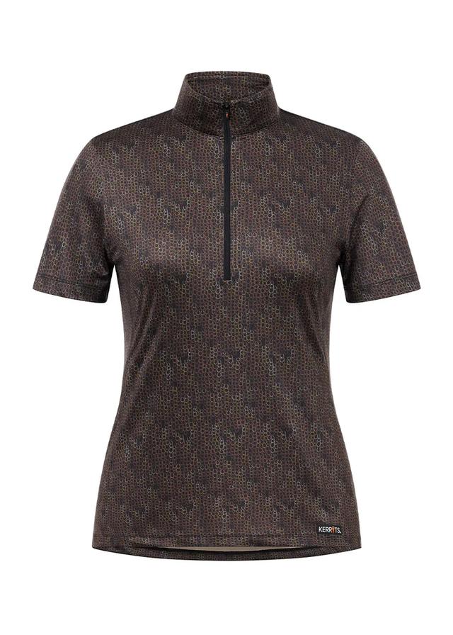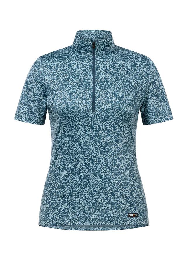 A cooling short sleeve riding top that wicks, breathes and covers for peak summer performance. Coolcore® fabric naturally wicks and disperses sweat, keeping riders cool and dry from warm-up to cool-down. Kerrits-exclusive equestrian prints provide flattering coverage, while cleverly concealing inevitable horse slobber and barn dirt. With UPF+40 sun protection and a ten-inch zip neck for customizable airflow, it’s a go-to for hot days in the saddle.