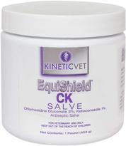 EquiShield CK Salve is a medicated salve with broad spectrum antimicrobial activity, designed for skin conditions responsive to chlorhexidine and ketoconazole in horses, dogs, and cats. Apply CK Salve using a gloved hand or spatula, applying directly on lesion once daily for 2 to 4 weeks. Rub into site and immediate surrounding vicinity. Avoid contact with eyes and mucous membranes. Chlorhexidine 2% and ketoconazole 1%.