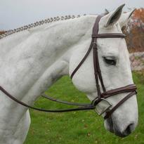 The KL Italia Millbrook Bridle offers a distinguishable look with a shaped noseband – wider across the front of the nose and tapering in on the sides. The Millbrook features a fancy stitched padded, flash cavesson noseband – measuring 1 3/8″ at its widest, narrowing to 1 1/8″ with 5/8″ flash strap; a matching round raised 7/8″ padded browband, and 1/2″ cheek pieces. Comes complete with 5/8″ Rubber Reins. This bridle also features our soft padded uni-crown headstall. This system allows you to have the ultimate comfort for your horse’s poll – while using a standard noseband. The KL Italia bridles are made of the best Italian leather. All hardware is stainless steel, with hook stud ends, and a roller buckle on the noseband.