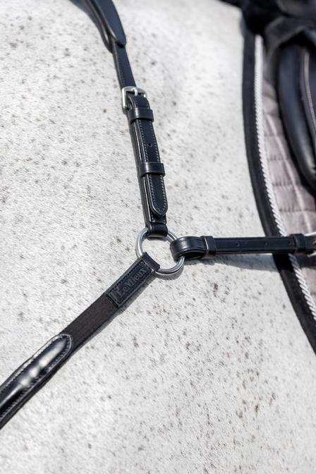The LeMieux Breastplate with Martingale attachment is the ideal solution for your tack room with a smart appearance and practical functionality. An adjustable top piece sits with a soft leather pad at the wither and attaches to the elasticated neck straps.