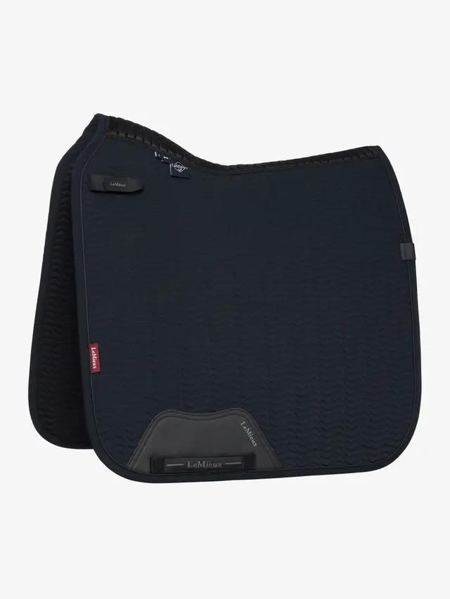 The sporty matte-textured faux leather girth protection area is complemented by an embossed logo. Our signature LeMieux hidden girth loop channels mean you can precisely place your girth. A unique LeMieux branded faux leather tab provides a luxurious finishing touch.