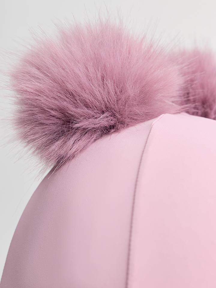 Double the joy for pom pom lovers, with this adorable double pom hat silk with contrasting peak. Made with 360° stretch, it will fit most helmet sizes with a snug and secure look. The cute and fun double faux fur pom poms are fixed (not detachable) for convenience and safety.