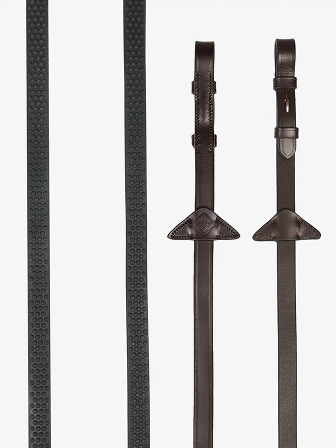 The LeMieux Soft Rubber Reins are beautifully soft and flexible reins that have a light feel in the riders' hands. With raised pimple texture for additional grip and nylon lining to prevent stretching.