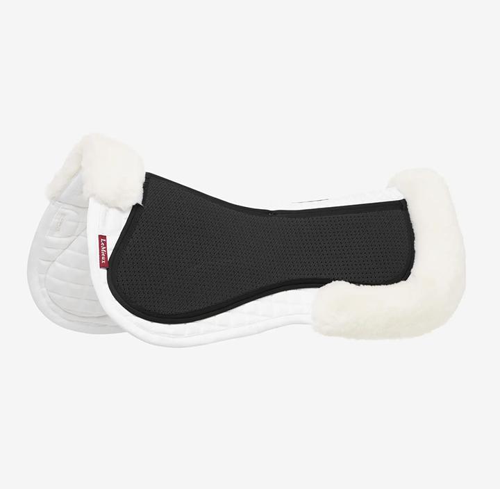 An all-purpose cut half pad, with Merino+ rolls at the withers and behind the saddle. Two perforated neoprene pockets on each side take foam shims to adapt your saddle fit. Neoprene offers excellent grip and shock absorption under the saddle, and the neoprene is perforated throughout for breathability.