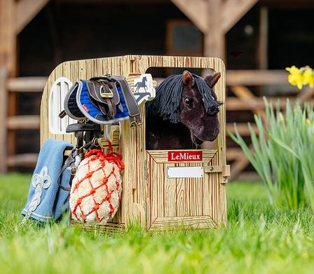Classic, wooden stable play scene designed by equestrians with authentic, realistic design details printed on. The perfect size for LeMieux Toy Ponies, and their stable accessories, for children to set up and enact authentic play scenarios.
