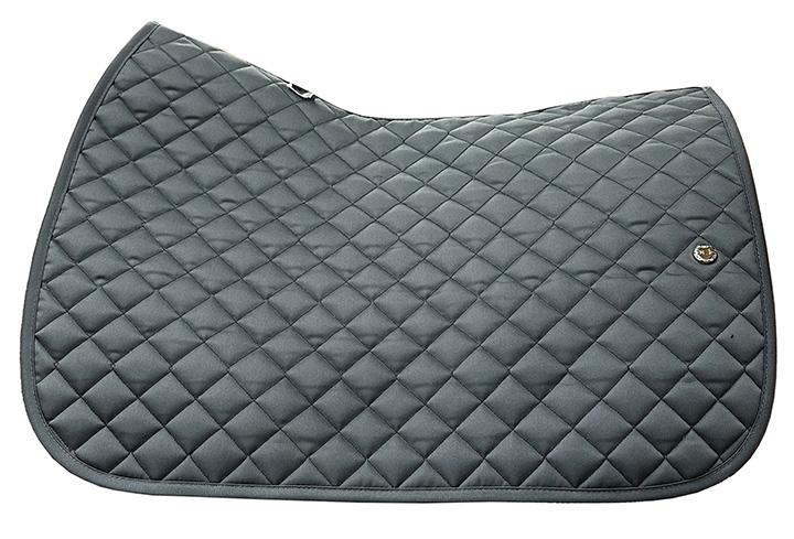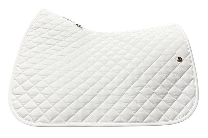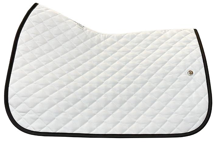 Short, square and so stable that it doesn't even need any straps to stay in place! The ideal saddle pad to have in the Grand Prix ring with the elegant look of a schooling pad! The Baby Pad is made of resistant poly cotton twill, protected with stain resistance on the outside. It also has our special quick-dry anti-bacterial/anti-fungal brushed poly on the inside and is composed of high-performance hollow core fiber that wicks away the moisture from your horse and dries quickly after use.
