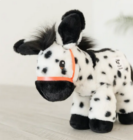 Meet Chrissy, the perfect plushie for those chilly winter nights! Embrace the warmth and comfort of our luxuriously soft donkey, crafted from high-quality polka-dot faux fur. With charming black mane, tail, muzzle, and feet, Chrissy is both adorable and huggable. And just like real donkeys, she even has a cross on her back!