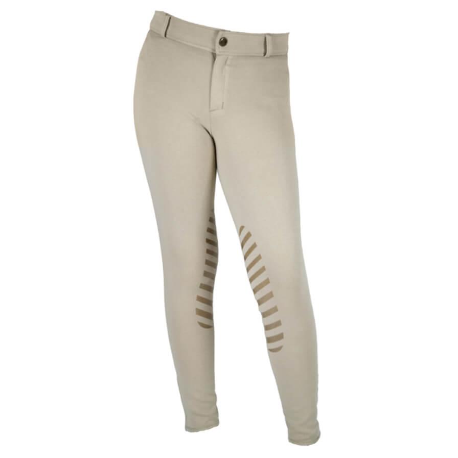 Comfortable mid weight stretch cotton with front zip and update lower rise makes a great show or schooling breech for the young rider. Breech features silicone gel knee patch.