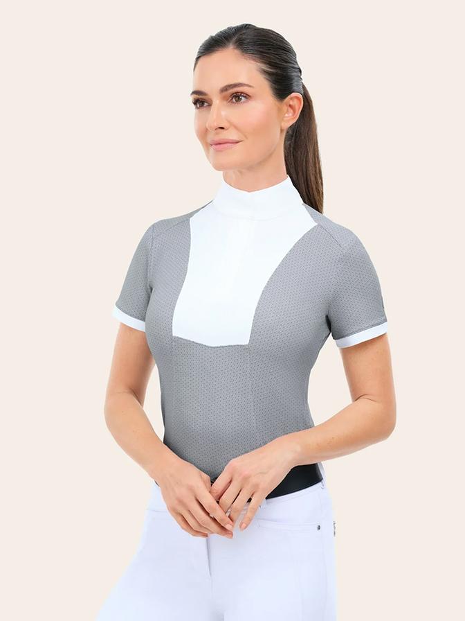 Designed to bring extra style and versatility into the show ring, the Elsie is the perfect addition to every rider’s wardrobe. Its modern seam lines and silky, cooling fabric ensures that rider’s stay comfortable and confident. The modern prints, paired with a white collar and front bib, elevate its style without compromising the classic look under a show coat.