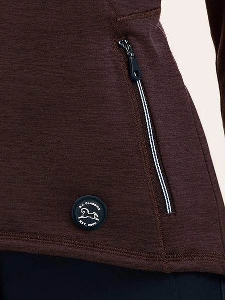 The Kira is a modern layering essential designed for the fall season. Featuring a sleek zip-up design and contemporary collar, it’s crafted from a soft, warm heathered fabric with built-in stretch and moisture-wicking properties. A back zipper pocket and UPF 30 sun protection add practical performance to this flattering, functional style.