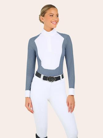 The Liv show shirt is designed to bring additional style and versatility to the show ring. Modern seam lines and silky, cooling fabric ensures that rider’s stay comfortable and confident. The unique prints, paired with a white collar and front bib, elevate its style without compromising the classic look under a show coat.
