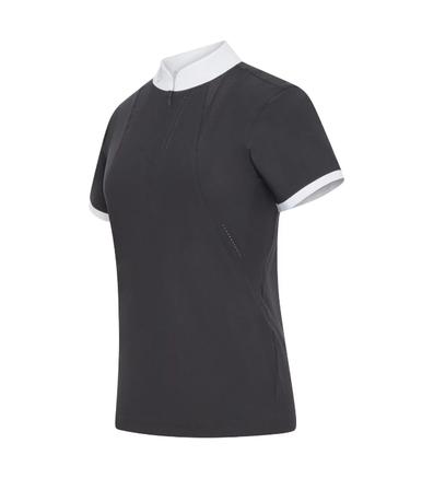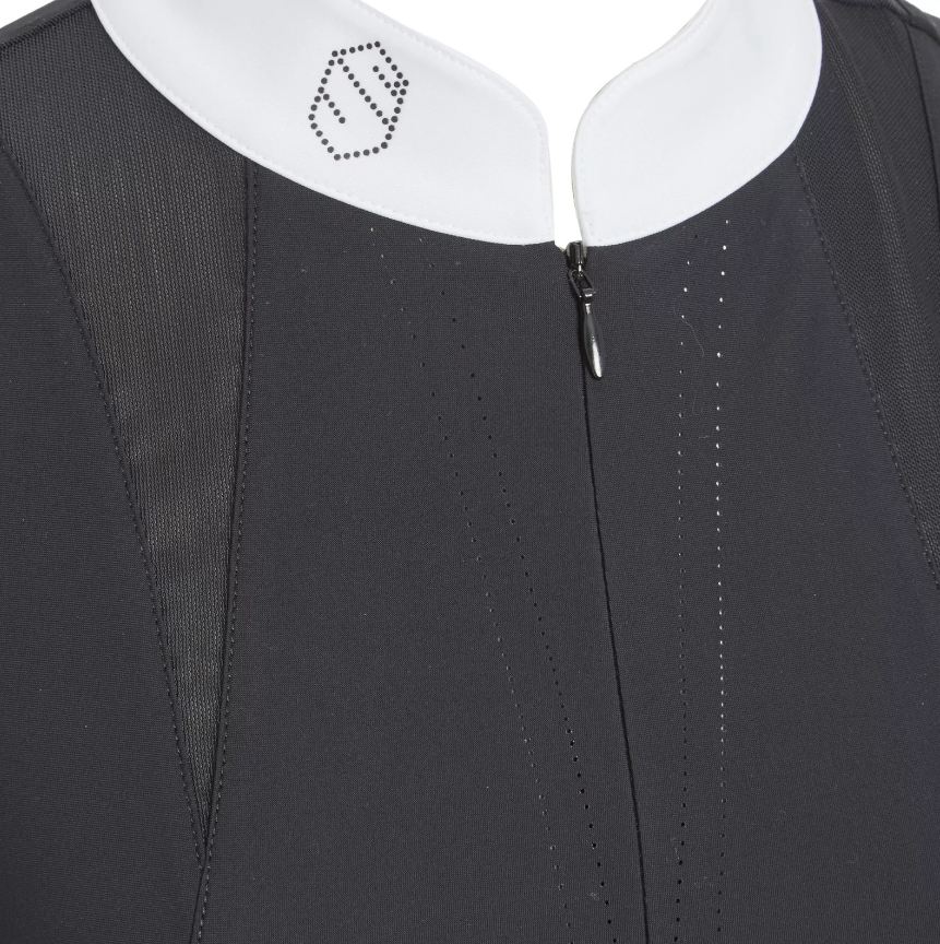 The Cassy short sleeve competition shirt gives a sleek silhouette to the rider thanks to the mesh panels on the chest and shoulders. Made of highly stretchy and breathable fabric, it provides the wearer with ultimate freedom of movement and comfort during competition. The printed finishes of the Samshield crest on the collar and cuffs give a subtle yet elegant finish. Easy to care for, machine washable and made with respect for the environment.