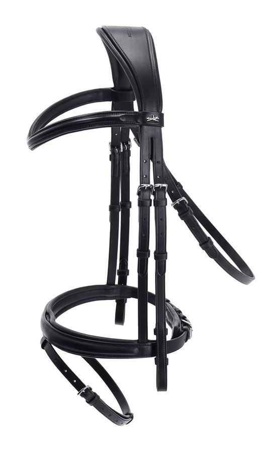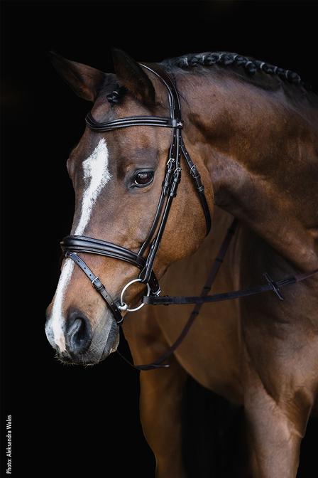 The Monza jumping bridle from our Classic Line will win you over with its shaped English combined noseband and has no embroidery. The Monza bridle also has a completely removable chin strap with a hidden loop and the new anatomical headpiece. The wide noseband fits snugly around the horse's nose.