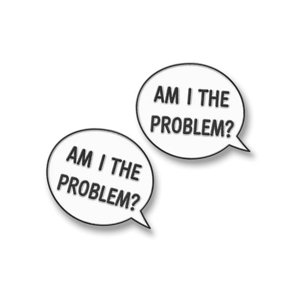 This pair of pins with the design Am I The Problem? Jumper number pins.