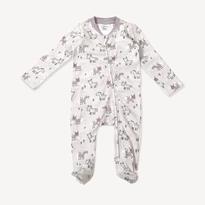 Stay cozy in this soft baby footie coverall in pure organic cotton with a fun and whimsical Horse and Bird print.