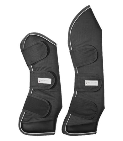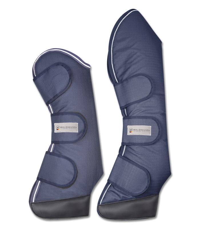 Anatomically shaped traveling boots fitted with three strong touch tape fasteners for optimum protection for your horse's legs. Shock-absorbing foam padding (thickness 1.5 cm) on the inside with a high cut. Soft fleece lining for comfort. Especially hard-wearing outer material with reinforcement at the heel area.