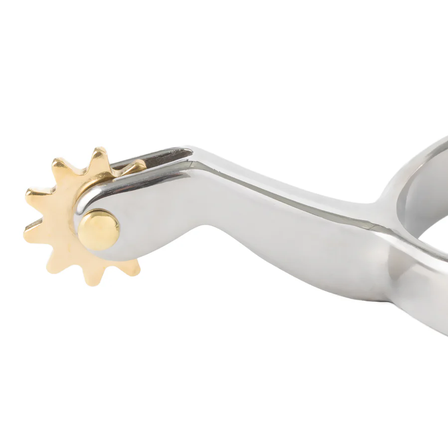 These stainless steel spurs feature a 1-3/4" shank, a 1/2" band and a 10 point rowel.