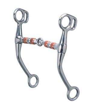 This stainless steel tom thumb snaffle bit features a 5" stainless steel and copper roller mouth and 6-1/2" cheeks.